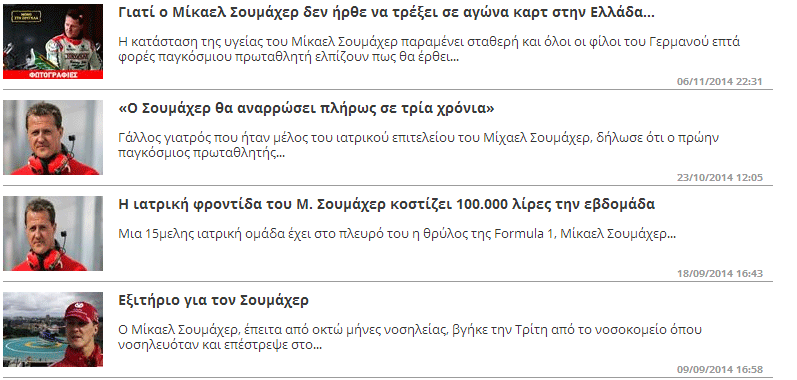 «Είναι σχετικό το ότι ο Σουμάχερ είναι καλύτερα. Είναι πολύ δύσκολα γιατί δεν μπορεί να μιλήσει. Είναι σαν κι εμένα, σε αναπηρικό καροτσάκι, παράλυτος, με προβλήματα στη μνήμη. Μοιάζει να επικοινωνεί με τα μάτια του με τη γυναίκα του και την εκπρόσωπο Τύπου… Το να βρίσκεται με την οικογένειά του ίσως του επιτρέψει να αναρρώσει συντομότερα, αλλά θα είναι πολύ δύσκολο».