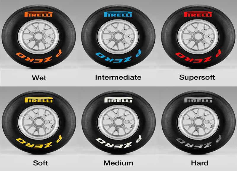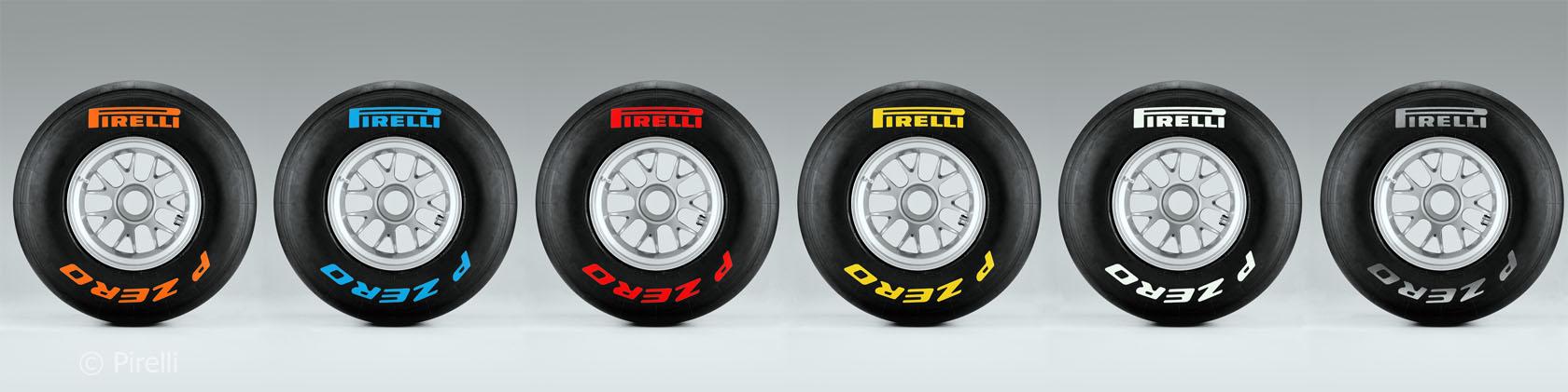 Στις αποχρώσεις από την άλλη, προκειμένου να ξεχωρίζουν οι πάντες τι ελαστικά φορά ένα μονοθέσιο ακόμα και από την πιο μακρινή γωνία της πίστας, η Pirelli άλλαξε τα χρώματα, με τα ελαστικά βροχής να έχουν μπλε απόχρωση στο πλάι, τα ενδιάμεσα πράσινη, τα πολύ μαλακά κόκκινη απόχρωση, τα μαλακά κίτρινη, τα μεσαία άσπρη και τα σκληρά ασημί.