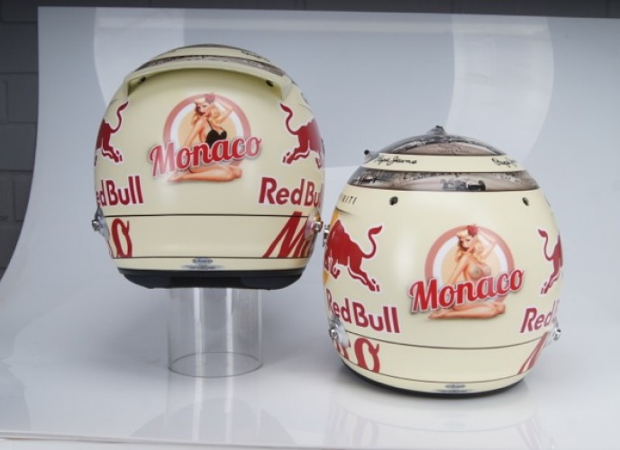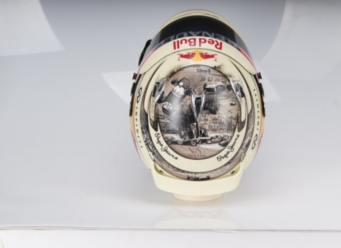 Αυτός που έχει κλέψει μέχρι στιγμής την παράσταση είναι ο Sebastian Vettel. Ο Γερμανός εμφανίσθηκε με ένα απίστευτο κράνος στις χθεσινές (23/5) ελεύθερες δοκιμές που στο πάνω μέρος απεικονίζει τον Stirling Moss της Lotus να μάχεται στο ίδιο GP το 1961, με τις Ferrari των Richie Ginther, Phil Hill και Graf Berghe von Trips.