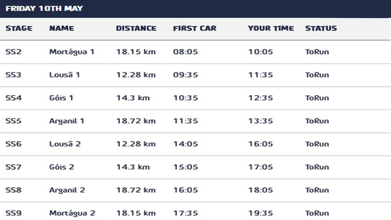 To ράλι Πορτογαλίας είναι ο πρώτος χωμάτινος αγώνας του WRC στην Ευρώπη. Σήμερα Παρασκευή θα γίνουν 8 Ειδικές Διαδρομές συνολικού μήκους 126.9 χλμ. Από αυτές οι τρείς είναι επαναλαμβανόμενες.