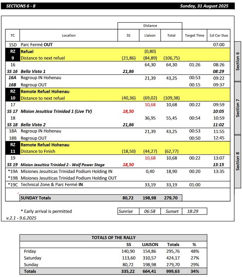 Το αγωνιστικό σύνολο στην Παραγουάη είναι 19 Ε.Δ, μήκους 335.22 χλμ. Μέχρι σήμερα έγιναν 254.5 km σε 15 Ε.Δ. Απομένουν μόνο τέσσερις μήκους 80.72 km. Λογικά θα κερδίσουν οι Sebastien Ogier- Vincent Landais , οι οποίοι όμως παίρνουν ρίσκα. Το μεγαλύτερο είναι ότι δεν έχουν στο πορτ μπαγκάζ δύο ρεζέρβες αλλά μία.