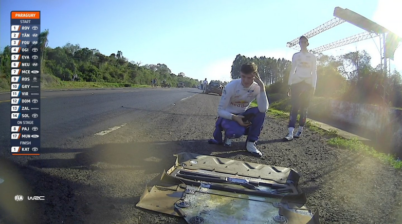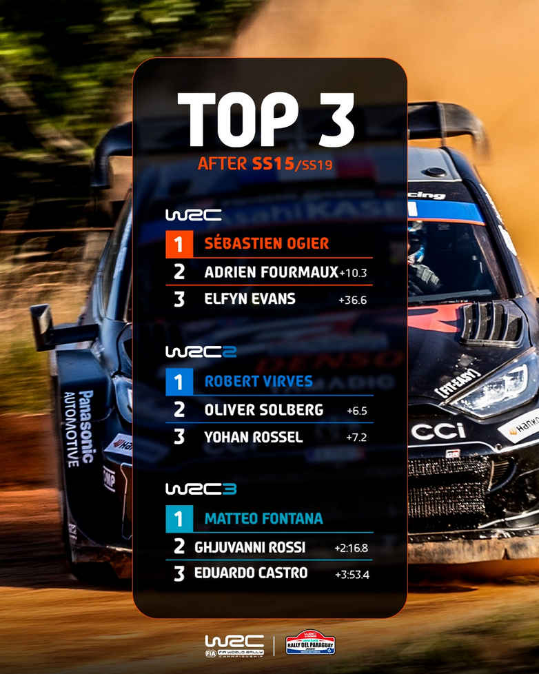 Η 14η ειδική διαδρομή ήταν καταστροφική. Ένα σκασμένο ελαστικό δύο ειδικές πριν το κλείσιμο της ημέρας, άλλαξε και πάλι τη σειρά των πρωτοπόρων. Ο οκτώ φορές παγκόσμιος πρωταθλητής είχε ξεκινήσει από την 4η θέση, 17,8 δευτερόλεπτα πίσω από τον Rovanpera. Στο τέλος της χθεσινής ημέρας οι Γάλλοι Sebastien Ogier- Vincent Landais (Toyota GR Yaris Rally 1) ήταν επικεφαλής του Rally del Paraguay και οι Φινλανδοί έπεσαν στην 6η θέση.