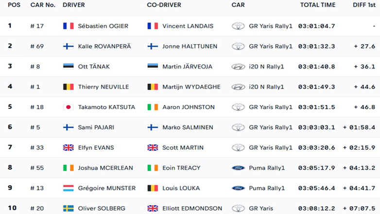 Στη 2η θέση πέρασαν Kalle Rovanpera – Jonne Halttunen ενώ οι Εσθονοί βρίσκονται στην 3η θέση