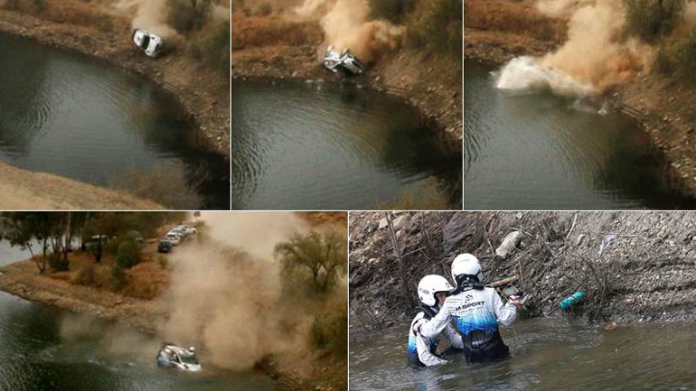 Δραματικές στιγμές έζησε το πλήρωμα του Ford Fiesta RS WRC αλλά και η ομάδα, στο Ράλι Μεξικού, όταν το αυτοκίνητο ξέφυγε της πορείας του και έπεσε μέσα σε μια λίμνη.