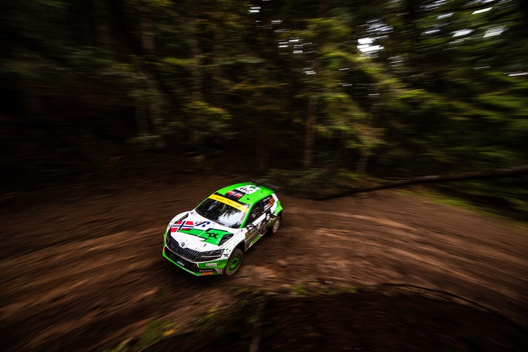 Ο Νορβηγός Andreas Mikkelsen, στην πρώτη του συνεργασία με τον Άγγλο Elliott Edmondson, με τη SKODA FABIA Rally2 evo βαμμένη στα γνώριμα αγωνιστικά χρώματα της SKODA. συντονίστηκαν άψογα.