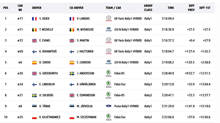 Πριν ξεκινήσει το Rally Mexico, ο Γάλλος οδηγός του GR Yaris Rally 1 Hybrid, Sebastien Ogier, είχε δηλώσει ότι θέλει να κερδίσει τον αγώνα για να κάνει επτά τις νίκες του στο Μεξικό. Το είπε και το έκανε. Το δίδυμο Sebastien Ogier-Vincent Landais με το GR Yaris Rally 1 Hybrid, κέρδισαν τον αγώνα και μάλιστα με διαφορά από τους Βέλγους Τ.Neuville- M.Wydaeghe (Hyundai i20 N Rally1 Hybrid) που την τελευταία στιγμή άρπαξαν για 0.4’’ τη 2η θέση από τους E.Evans-S.Martin (GR Yaris Rally 1 Hybrid).