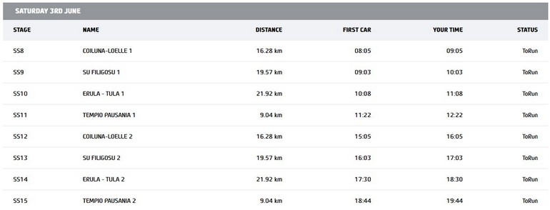 Η σημερινή ημέρα ήταν εξαιρετικά δύσκολη για όλους. Έγιναν τρείς επαναλαμβανόμενες ειδικές διαδρομές συνολικού μήκους 141.24 χιλιομέτρων. Στην πρώτη ( SS2 Tantariles 2 Oris1 o Lappi δεν κατάφερε να κρατήσει την πρωτοπορία. Ο έμπειρος παγκόσμιος πρωταθλητής S. Ogier πέρασε μπροστά με +0.4. Ο Esapekka Lappi χτύπησε μπροστά δεξιά το Hyundai αλλά όπως είπε λίγο αργότερα μετά το τέλος της ειδικής ούτε που κατάλαβε τι έγινε.