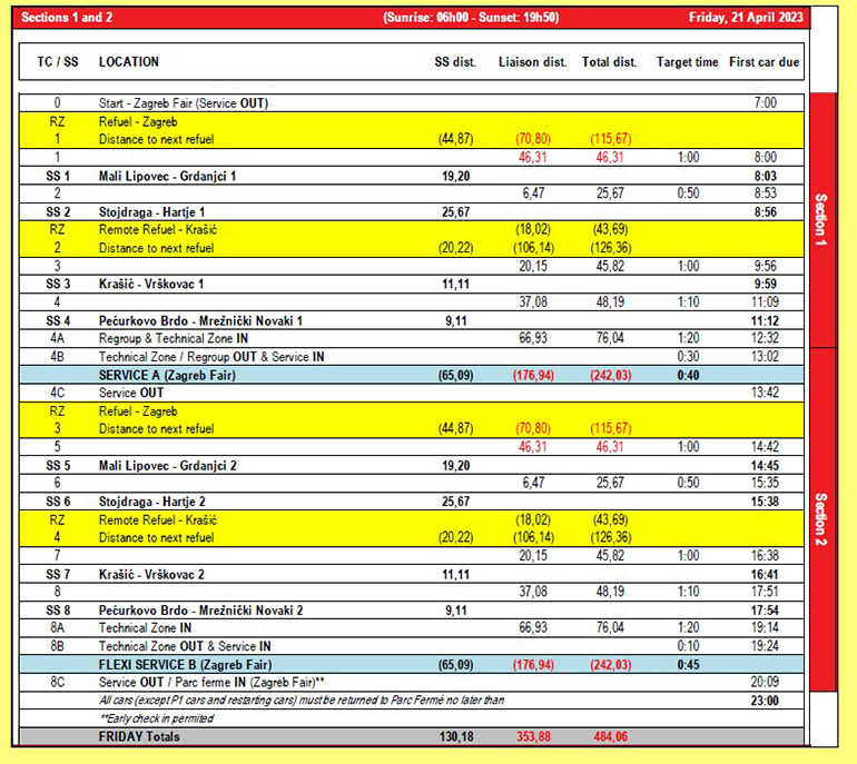Μεγάλο μέρος της διαδρομής για φέτος είναι γνωστό από το 2022. Μετά από το shakedown το πρωί της Πέμπτης θα ακολουθήσει το ίδιο βράδυ η τελετουργική εκκίνηση στο Ζάγκρεμπ .