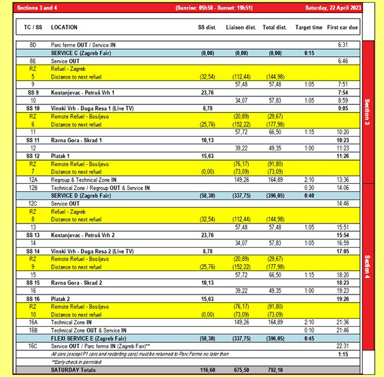 Οι αγωνιζόμενοι θα κάνουν 130,18 αγωνιστικά χιλιόμετρα, που είναι και τα περισσότερα από όλες τις ημέρες. Θα γίνουν οι ειδικές Mali Lipovec – Grdanjci (19,20km) και Stojdraga – Hartje (25,67km από δύο φορές. Η ειδική των 25,67 χιλιομέτρων το 2022 ήταν κατά πέντε χιλιόμετρα μικρότερη. Είναι στενή με πάρα πολλές στροφές. Την λένε και ειδική των «χιλίων στροφών».Την ίδια ημέρα θα γίνουν δυο γρήγορες ειδικές οι Krašić – Vrškovac (11,11km) και Pećurkovo Brdo – Mrežnički Novaki (9,11km).