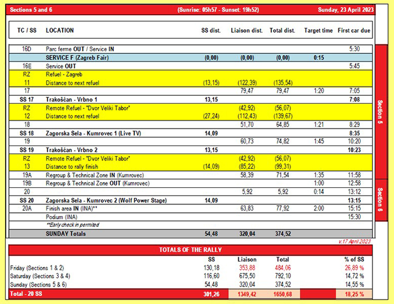 Την Κυριακή, (23/4) τελευταία ημέρα του Rally Croatia o αγώνας διεξάγεται στα βόρεια του Ζάγκρεμπ. Θα γίνουν τέσσερις ειδικές διαδρομές (οι δυο επαναλαμβανόμενες). Οι δρόμοι είναι καλύτεροι και βαρδύτεροι. Η πρώτη ειδική είναι η Trakošćan- Vrbno (13,15 χλμ.) και ξεκινάει κοντά σε ένα παραλίμνιο κάστρο του 13ου αιώνα μέσα από ένα εκπληκτικό τοπίο.