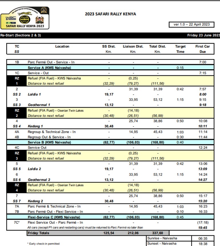 Η μάχη ξεκίνησε στην Κένυα με την Super Special Kasarani μήκους 4.84 km. Οι Ott Tanak- Martin Jarveoja ( Ford Puma Rally Hybrid) κέρδισαν οριακά την υπερειδική και τέθηκαν επικεφαλής του αγώνα που στην ουσία οι σκληρές δοκιμασίες (S.S)  αναμένονται να είναι στο αυριανό σκέλος.