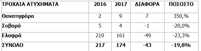 Μία αύξηση ποσοστού της τάξεως του 350%, σε αντίθεση με τα σοβαρά και ελαφρά τροχαία, όπου υπήρξε πτώση (πάνω από 20%).