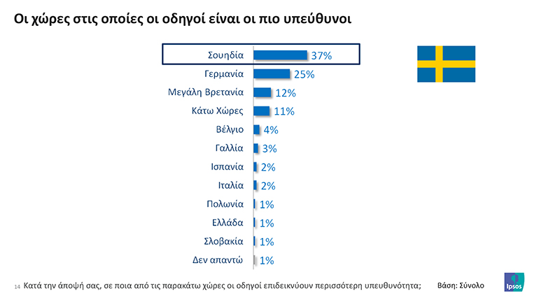 Τα εν λόγω αποτελέσματα φέρνουν τη χώρα μας στην πρώτη θέση μεταξύ των χωρών στις οποίες παρατηρείται επικίνδυνη συμπεριφορά των οδηγών αναφορικά με τη χρήση συνδεδεμένων συσκευών. Επίσης, οι Γερμανοί συγκαταλέγονται μεταξύ του 48% των οδηγών που παραδέχονται ότι ρυθμίζουν το GPS κατά την οδήγηση, σε αντίθεση με το 30% των Ελλήνων που περιλαμβάνονται μεταξύ των καλύτερων μαθητών. Όσον αφορά τους Ιταλούς, βρίσκονται στην 1η θέση (34%) μεταξύ αυτών που δηλώνουν ότι στέλνουν ή διαβάζουν SMS στο κινητό ενώ οδηγούν.