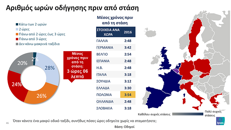 Ωστόσο, η συγκεκριμένη συνείδηση του κινδύνου δεν μεταφράζεται ακόμα σε αλλαγή συμπεριφοράς. Οι Έλληνες είναι αυτοί που παρουσιάζουν τη μεγαλύτερη διαφορά στην έλλειψη ύπνου μεταξύ των καθημερινών και του Σαββατοκύριακου: 33% κοιμούνται λιγότερο από 6 ώρες κάθε βράδυ κατά τη διάρκεια της εβδομάδας και 9% το Σαββατοκύριακο, πράγμα που αντιστοιχεί σε διαφορά 27 μονάδων φέρνοντάς τους στην 1η θέση και ακολουθούν οι Σλοβάκοι (22 μονάδες διαφορά) και οι Γερμανοί (20 μονάδες διαφορά). Λόγω αυτής της χρόνιας έλλειψης ύπνου, οι Έλληνες συνεχίζουν πρακτικές που είναι αντίθετες με τους κανόνες ασφαλείας κυρίως πριν από μεγάλα ταξίδια: