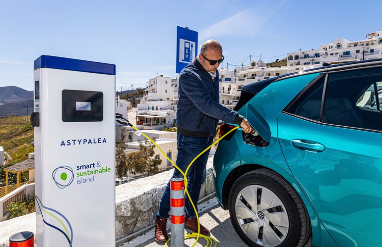 Το περιπολικό της Αστυνομίας , του Λιμενικού Σώματος , το αυτοκίνητο της Δημοτικής Αρχής αλλά και της Υπηρεσίας Πολιτικής Αεροπορίας, είναι φυσικά ηλεκτρικά της VW. Σήμερα στο νησί υπάρχουν 20 θέσεις με ισχύ φόρτισης 11 kW και ένας ταχυφορτιστής 50 kW. Ακόμη 18 ιδιώτες έχουν εφοδιαστεί από wallboxes.