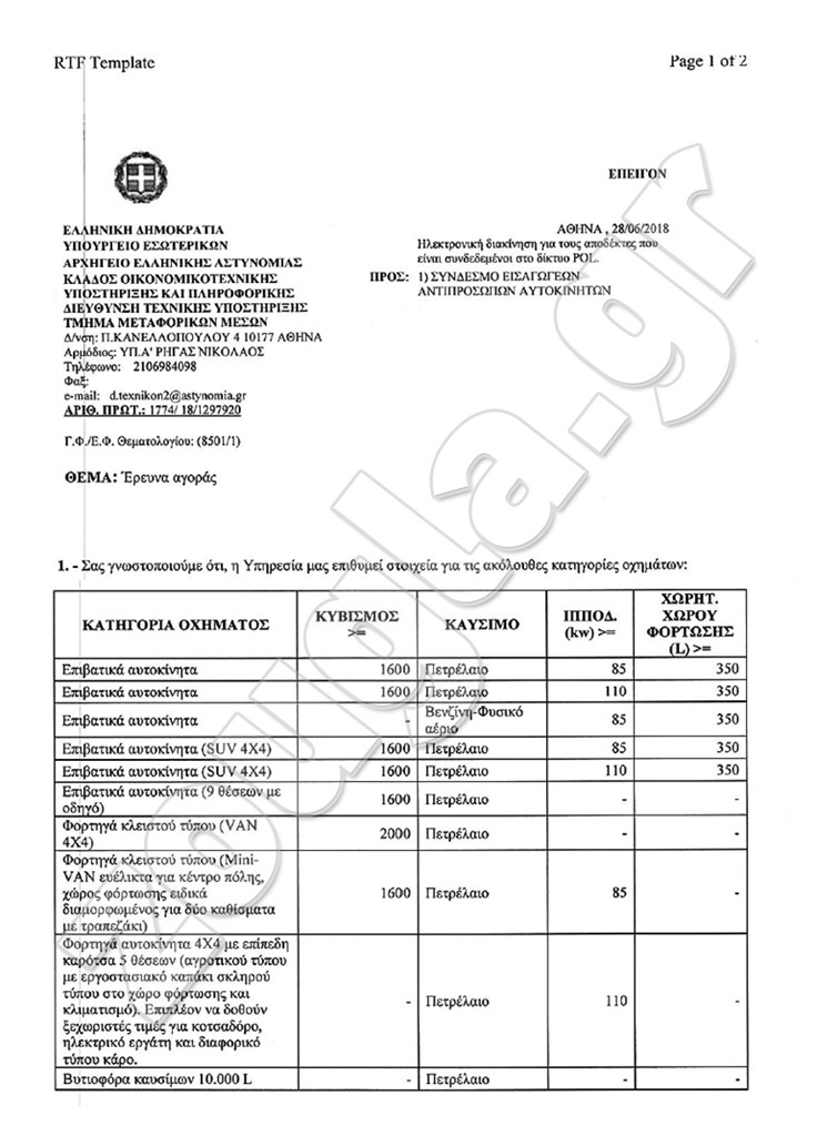 Και ενώ το πρόβλημα είναι μόνιμο και το γνωρίζουν ακόμα και οι… πέτρες, ο στόλος των περιπολικών σπάνια αλλάζει ή αλλάζει ξαφνικά. Χαρακτηριστικό παράδειγμα το σημερινό (!) όπου η Ελληνική Αστυνομία ζήτησε από τον Σύνδεσμο εισαγωγέων Αντιπροσώπων Αυτοκινήτων προσφορά για καινούργια οχήματα.
