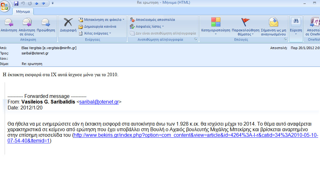 Σύμφωνα με το Υπουργείο Οικονομικών η έκτακτη εισφορά ίσχυε μόνο για το 2010 (ενημέρωση στις 20/1/2012)
