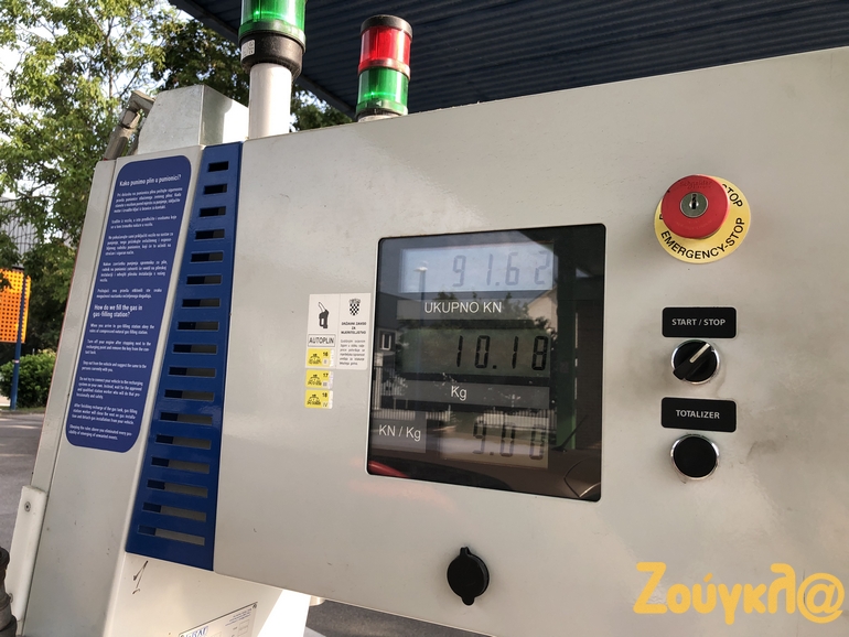 Γεμίζουμε φυσικό αέριο στο Βελιγράδι και ταξιδεύουμε επί τέσσερις ώρες, διανύοντας άλλα 400 χιλιόμετρα (το φυσικό αέριο τελείωσε λίγο πριν μπούμε στην πόλη και χρησιμοποιήσαμε και λίγη βενζίνη), μέχρι την κροατική πρωτεύουσα, το Ζάγκρεμπ. Η Κροατία παραδόξως έχει μόλις δύο πρατήρια φυσικού αερίου, τα οποία μάλιστα διαθέτουν το καύσιμο σε πολύ ακριβή τιμή – 1,34 ευρώ το κιλό. Το ένα από τα δύο είναι στο Ζάγκρεμπ.