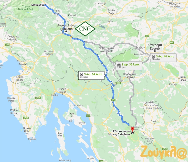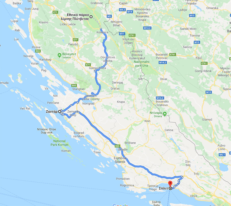 Ταξιδεύουμε από τη σλοβενική πρωτεύουσα στο καταπληκτικό και μοναδικό στο είδος του εθνικό πάρκο του Πλίτβιτσε, με τις 16 λίμνες και τους δεκάδες καταρράκτες (δείτε περισσότερα εδώ), σε περίπου δύο ώρες και διανύοντας 200 χιλιόμετρα. Από εκεί φτάνουμε στο Ζαντάρ, στις κροατικές ακτές, σε συνολικά 5 ώρες διαδρομής και διανύοντας 360 χιλιόμετρα.