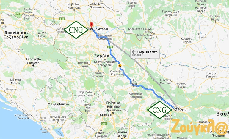 Το δίκτυο πρατηρίων φυσικού αερίου της Βουλγαρίας είναι το μεγαλύτερο στα Βαλκάνια, καθώς η χώρα διαθέτει 114 (!) πρατήρια, που βρίσκονται διάσπαρτα σε όλη την επικράτειά της. Γεμίζουμε στο ένα από τα 25 που υπάρχουν στη Σόφια, με τιμή μόλις 0,75 ευρώ το κιλό, δηλαδή με 8 ευρώ. Οδηγούμε περίπου 5 ώρες και διανύουμε 400 χιλιόμετρα και φτάνουμε στο Βελιγράδι. Η Σερβία επίσης έχει ένα καλό δίκτυο πρατηρίων φυσικού αερίου (20) και τα 5 από αυτά είναι στην πρωτεύουσά της. Η τιμή ανά κιλό είναι σχεδόν η ίδια με αυτήν στη Βουλγαρία (0,77 ευρώ ανά κιλό).