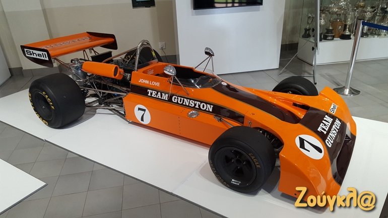 Ο John Love και η συλλογή του με κύπελλα και διακρίσεις από αγώνες. Ο οδηγός από την Αφρική (Ζιμπάμπουε) έτρεξε και σε αγώνες του παγκοσμίου πρωταθλήματος Formula 1 και ήταν ίνδαλμα για τους Νοτιοαφρικανούς.