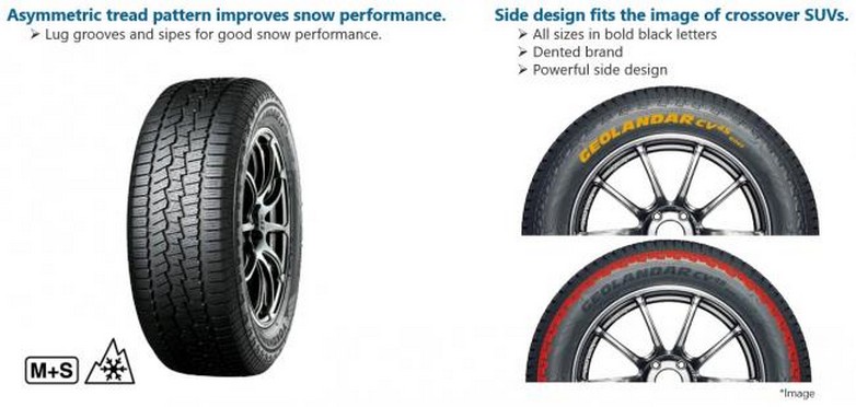 Η YOKOHAMA θα λανσάρει στη Βόρεια Αμερική, την Ευρώπη και στη συνέχεια τη Νότια Κορέα, το GEOLANDAR CV 4S, ένα all-season ελαστικό για crossover SUVs. Το νέο ελαστικό θα είναι διαθέσιμο σε 32 μεγέθη, που κυμαίνονται από 245/45R20 103V έως 235/65R17 108V. Έχει νέο ασύμμετρο σχέδιο πέλματος και μια νέα σύνθεση συμβάλλουν στην εξαιρετική απόδοση του ελαστικού τόσο σε βρεγμένο οδόστρωμα και χιόνι, όσο και σε στεγνό οδόστρωμα. Και τα 32 μεγέθη έχουν λάβει την ονομασία M+S (λάσπη & χιόνι) που υποδηλώνει ότι θα προσφέρουν εξαιρετική απόδοση σε ξαφνική χιονόπτωση καθώς και το σύμβολο Three-Peak Mountain Snowflake που αφορά ελαστικά τα οποία πληρούν τα διεθνή πρότυπα σχετικά με συνθήκες σφοδρής χιονόπτωσης.