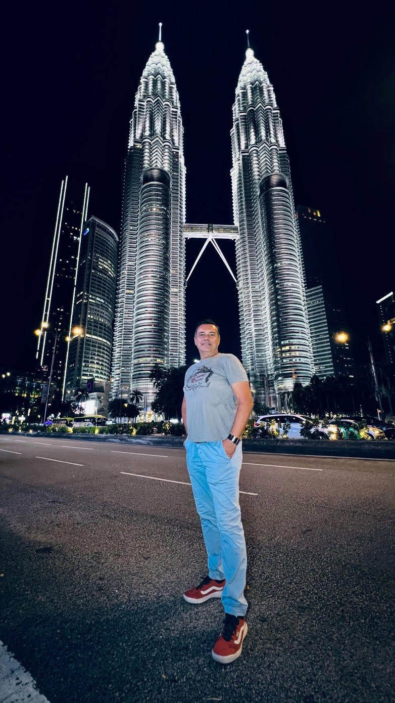 To MotoGP είχε φέτος 6 συνεχόμενους Αγώνες σε Ασία και Ωκεανία, με τη σειρά Ινδία, Ιαπωνία, Ινδονησία, Αυστραλία, Ταϊλάνδη και Μαλαισία και ο απεσταλμένος μας Δημήτρης Διατσίδης είναι ο πρώτος Έλληνας δημοσιογράφος που παρακολούθησε ποτέ και τους έξι αυτούς αγώνες, μεταφέροντας μας τα σχετικά ρεπορτάζ. Μαζί ήταν η πρώτη φορά και για την Ελληνική τηλεόραση που βρέθηκε σε αυτήν την περιοχή του πλανήτη και τα σχετικά ρεπορτάζ προβλήθηκαν από την Cosmote TV. Στη φωτογραφία ο ΔΔ μπροστά στους ψηλότερους δίδυμους πύργους του κόσμου, τους πύργους Petronas με ύψος 452 μ. και με 88 ορόφους ο καθένας, στην πρωτεύουσα της Μαλαισίας Κουάλα Λουμπούρ.