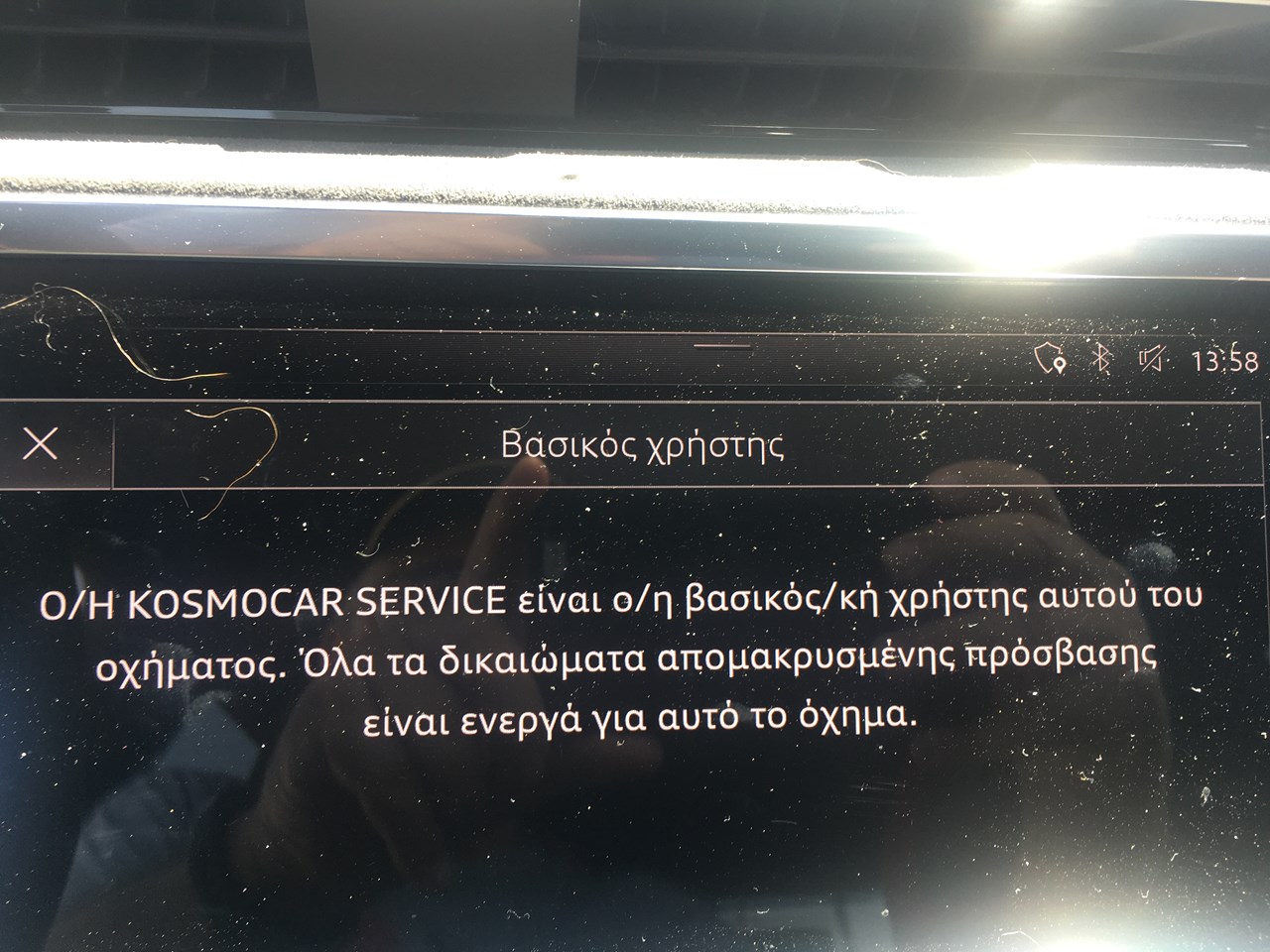 Πριν ξεκινήσετε θα πρέπει να ενημερωθείτε σωστά από την κεντρική οθόνη για όλες τις λειτουργίες. Αρχικά υπάρχει ένα μήνυμα που σου λέει ότι η εταιρία (αφού σε αυτήν ανήκει το αυτοκίνητο της δοκιμής ) έχει όλα τα δικαιώματα της απομακρυσμένης πρόσβασης.