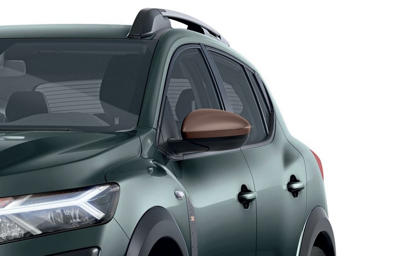 – Ονομασία μοντέλου με γράμματα σε απόχρωση Copper Brown (σκούρου χαλκού) στις μπάρες οροφής (για το Stepway, Jogger και Duster)/λεπτομέρειες σε Copper Brown στις μπάρες οροφής (για το Spring)