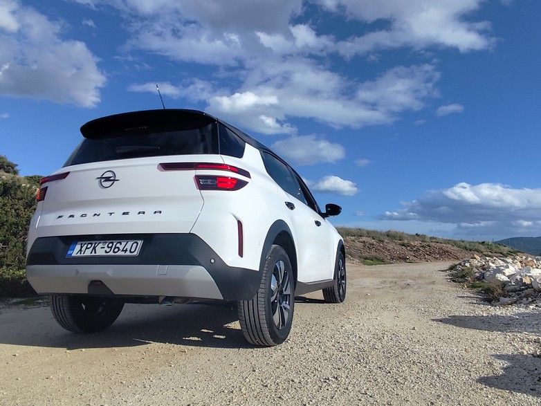 Στο πίσω μέρος, υπάρχει μία αεροτομή στο τέλος της οροφής (μας αρέσει που τμήμα της κατεβαίνει προς τις πίσω κολόνες, δημιουργώντας μία οπτική ψευδαίσθηση), ενώ υπάρχουν στενά LED φώτα, με το “FRONTERA” να αναγράφεται κάτω από το έμβλημα. Η απόσταση από το έδαφος είναι στα 20 εκατ. και η έκδοση GS που είχαμε, διέθετε 17άρες ζάντες.