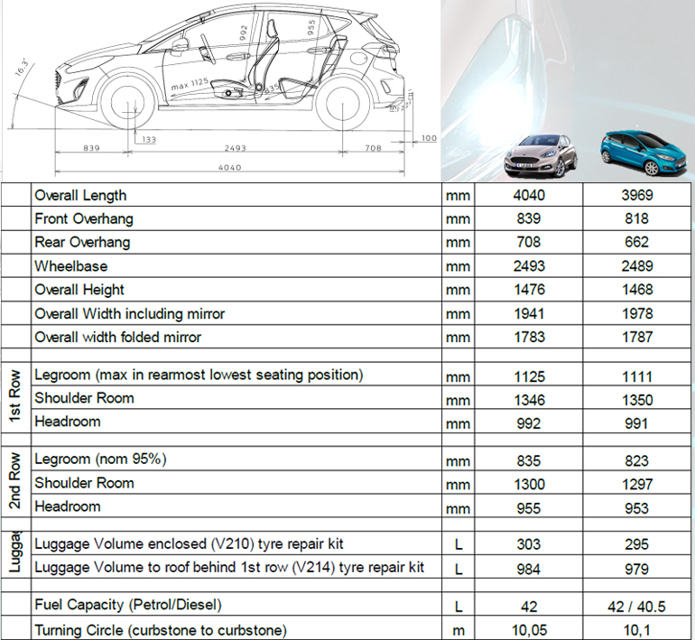 Το μήκος έχει μεγαλώσει οριακά όπως και το φάρδος ενώ τα πίσω φωτιστικά σώματα είναι πλέον οριζόντια. Η γενική εικόνα αρέσει και σε αντίθεση με πολλές εταιρείες του ανταγωνισμού το νέο Fiesta διατηρεί τα βασικά χαρακτηριστικά του μοντέλου που έχει γράψει τη δική του ιστορία.
