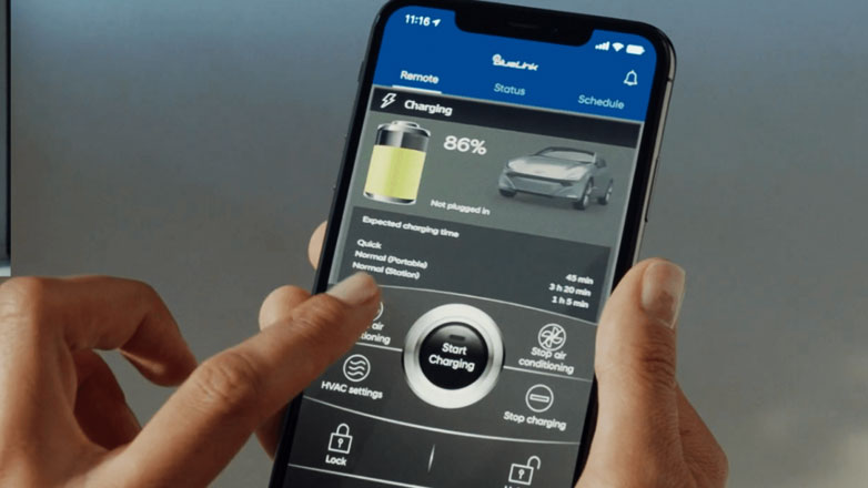 Με την εφαρμογή Bluelink δεν έχεις άγχος για την ηλεκτρική αυτονομία, μιας και είσαι σε θέση ανά πάσα στιγμή να ελέγξεις εάν η μπαταρία είναι αρκετά φορτισμένη για την επόμενη διαδρομή σου. Παράλληλα μπορείς να διαχειρίζεσαι την φόρτιση, τον προγραμματισμό αυτής, ακόμα και να συγκρίνεις τις τιμές φόρτισης και να επιλέγεις κάθε φορά αυτή που σε συμφέρει περισσότερο.