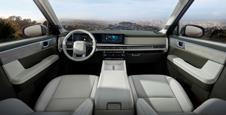 Στο εσωτερικό του Νέου Santa Fe oι επιβάτες θα βιώσουν μια αίσθηση σχεδιαστικής ενότητας και τεχνολογίας αιχμής. Ο κρυφός φωτισμός σε σχήμα “H” εκτείνεται απρόσκοπτα από το ταμπλό έως τις εμπρός και πίσω πόρτες, προσδίδοντας στην καμπίνα μια κομψή και μοναδική αίσθηση που συμπληρώνει το εξωτερικό. Η διπλή, πανοραμική κυρτή οθόνη, που ενσωματώνει έναν ψηφιακό πίνακα οργάνων 12,3 ιντσών και μια οθόνη πλοήγησης 12,3 ιντσών, προσφέρει εξαιρετική λειτουργικότητα, ενώ η οθόνη αφής των 6,6 ιντσών για τον έλεγχο του συστήματος κλιματισμού φέρνει στο προσκήνιο πολλαπλές λειτουργίες του συστήματος μέσω συναρπαστικών κινούμενων εφέ.