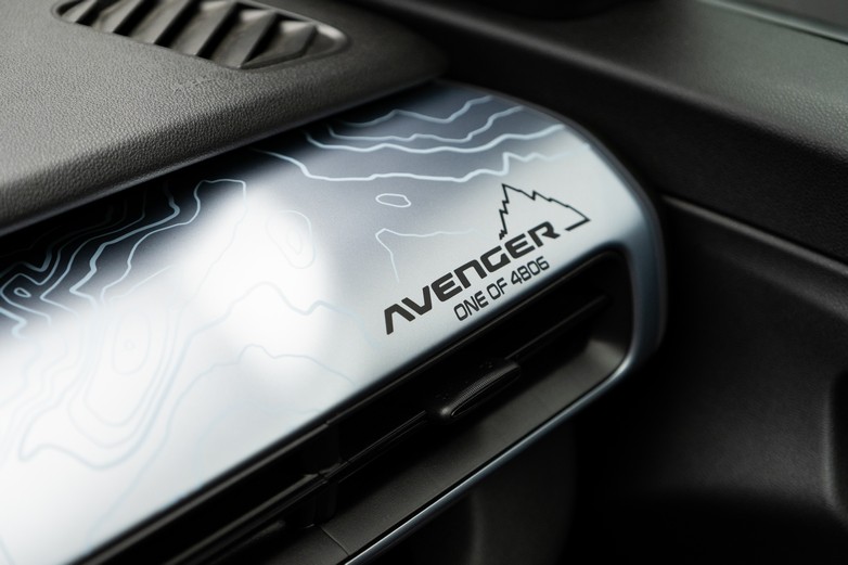Οι ισοϋψείς γραμμές του Mont Blanc απαντώνται και στο ταμπλό, ενώ υπάρχει ειδικό γραφικό με την κορυφογραμμή του βουνού και αναγραφή για τα 4.806 Avenger 4xe The North Face Edition που θα παραχθούν. Τα πατάκια έχουν σχεδιαστεί με τρισδιάστατες οροσειρές. Τα καθίσματα είναι επενδυμένα με ανθεκτικό υλικό που καθαρίζεται πιο εύκολα.