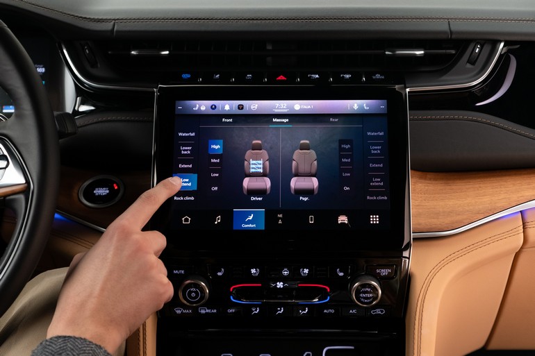 Τέλος το πολυτελές Grand Cherokee εκτός από το υβριδικό σύστημα, έχει εξελιγμένη αεροδυναμική και φωτιστικά σώματα τεχνολογίας full-LED, μέχρι το προηγμένο σύστημα πολυμέσων Uconnect με την οθόνη αφής, τον ψηφιακό καθρέπτη οπισθοπορείας, το έγχρωμο heads-up-display, τις υπηρεσίες Uconnect που επιτρέπουν τον έλεγχο της κατάστασης και των λειτουργιών του αυτοκινήτου από απόσταση.