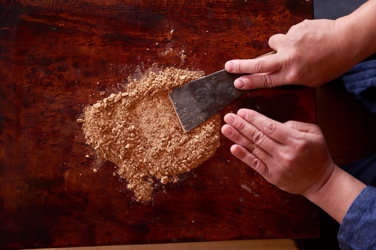 Μια τεχνική περίπλοκη, που δοκιμάζει την υπομονή του καλλιτέχνη, απαιτεί δεκάδες λεπτές στρώσεις από λάκα, ενώ χρειάζεται να περάσουν μέρες ανάμεσα σε κάθε στρώση προκειμένου να στεγνώσουν, πριν τις τρίψει ο καλλιτέχνης στο τελικό πάχος των 0.03 χιλιοστών.