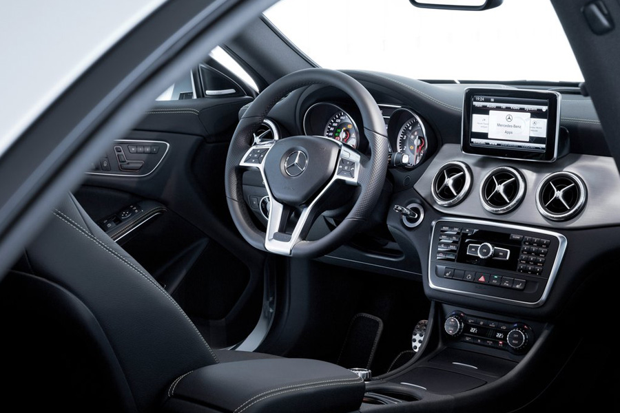 Η καμπίνα έχει ελάχιστες διαφορές από αυτή της A-Class, συνδυάζοντας τα σπορτίφ στοιχεία με την ποιότητα. Οι πέντε στρογγυλοί αεραγωγοί κατά μήκος του ταμπλό, το τιμόνι, ο πίνακας οργάνων με τα ασημένια και κόκκινα διακριτικά, η ψηφιακή οθόνη στην κεντρική κονσόλα και το οριζόντιο φιλέτο με τη διαφορετική επένδυση δίνουν την αίσθηση στον οδηγό ότι βρίσκεται σε ένα καθαρά οδηγοκεντρικό σαλόνι. Η