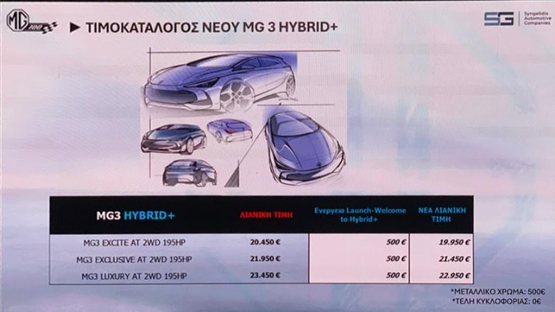 Η αρχική τιμή του νέου MG3 Hybrid+ είναι 20.450 ευρώ, αλλά με την προωθητική ενέργεια που θα ισχύει για λίγες εβδομάδες θα είναι 19.950 ευρώ.
