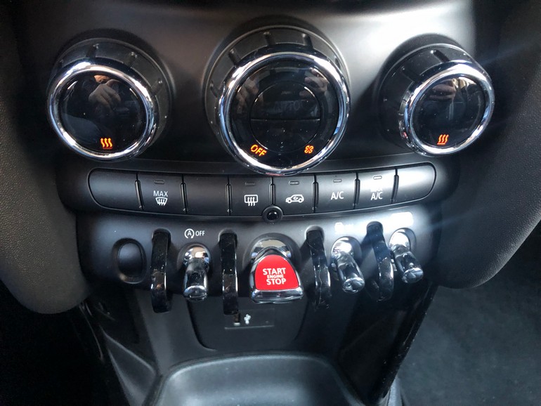 Οι διακόπτες στο εσωτερικό είναι αεροπορικού τύπου (διατηρεί η Mini την παράδοση) τα καθίσματα τύπου μπάκετ με πολύ καλή στήριξη για οδηγό και συνοδηγό.