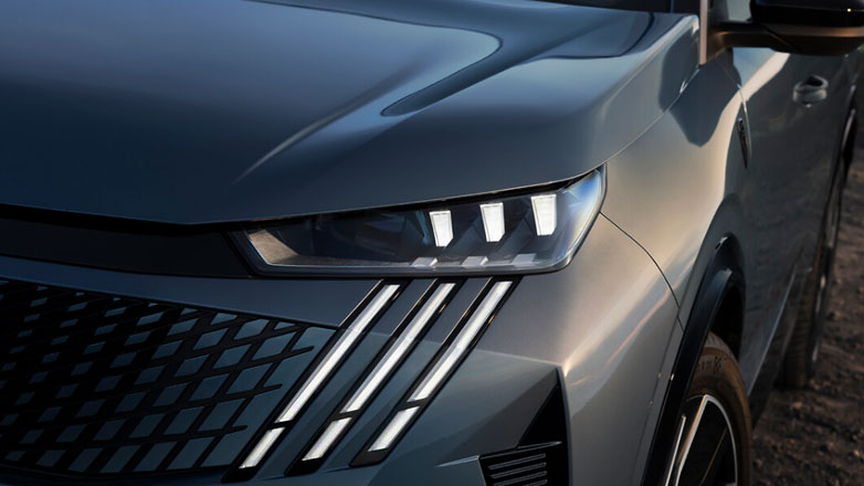 Το νέο 5008 δεν μοιάζει με άλλο όχημα της αγοράς, χάρη στην αιχμηρή του σχεδιαστική προσέγγιση, με απόλυτο highlight τα στάνταρ LED φωτιστικά σώματα και τα ιδιαίτερης σχεδίασης LED κάθετα φώτα ημέρας. Εντυπωσιακοί και οι τροχοί 19 ή 20 ιντσών οι οποίοι εκτός από μοναδική σχεδίαση έχουν και το καινούργιο λογότυπο της φίρμας στο κέντρο, ενώ η χρωματική παλέτα προσφέρει έξι επιλογές αλλά και διχρωμία με μαύρη γυαλιστερή οροφή.