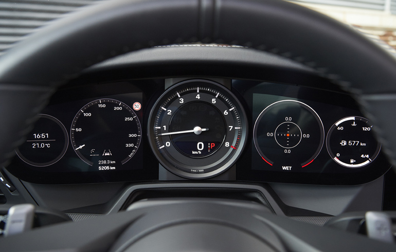 Τα καθίσματα προσφέρουν άριστη στήριξη στο σώμα του οδηγού και του συνοδηγού, με την Porsche να έχει εξοπλίσει την 911 με κάθε λογής σύστημα υποβοήθησης. Ξεχωρίζει το πρωτοποριακό «Wet Mode», το οποίο είναι στάνταρ και ανιχνεύει το νερό στον δρόμο και σε κλάσματα του δευτερολέπτου προσαρμόζει ανάλογα τα συστήματα ελέγχου.