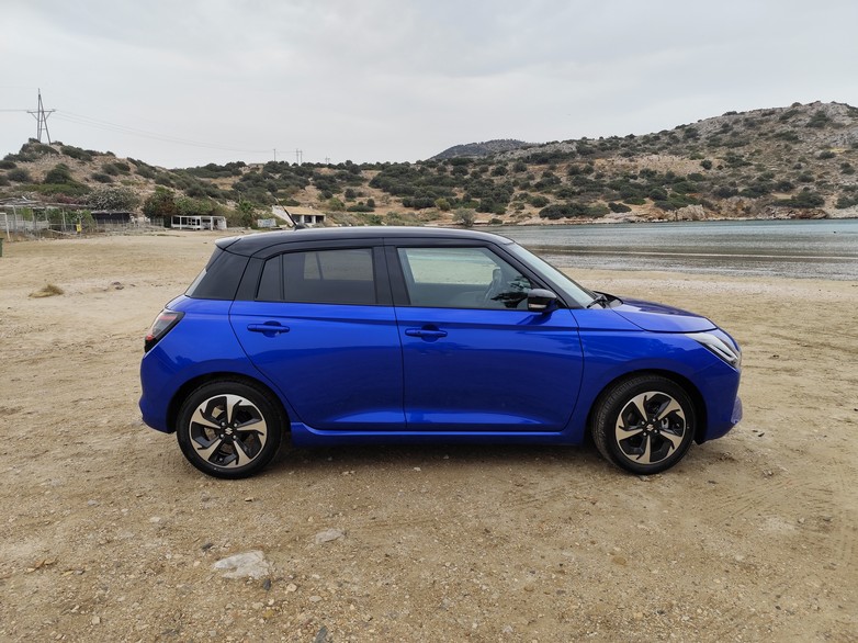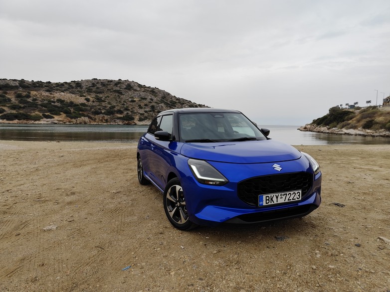Πήραμε το μπλε προσθιοκίνητο και με μηχανικό κιβώτιο Swift (ναι υπάρχει και τετρακίνητη έκδοση – το μοναδικό μοντέλο στην συγκεκριμένη κατηγορία με AWD) και οδηγήσαμε μέχρι το Σούνιο. Το αυτοκίνητο είναι άκρως ευκολοδήγητο και ιδιαίτερα οικονομικό καθώς με ήρεμη οδήγηση βλέπεις άνετα κατανάλωση κάτω από 5λτ./100χλμ. Το τιμόνι «ακούει» πολύ καλά, ενώ για να περάσει ο ήχος του 3κύλινδρου κινητήρα στην καμπίνα, πρέπει να τον πιέσεις στο κόκκινο φάσμα.
