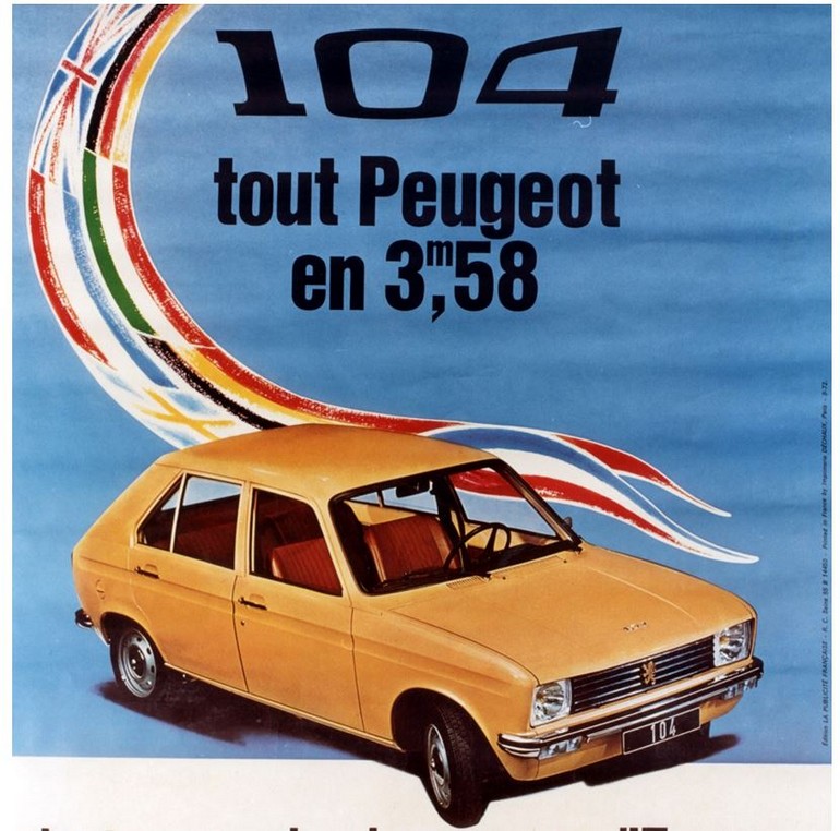 Το πρώτο Peugeot με την  ένδειξη 104 παρουσιάσθηκε  στο σαλόνι του Παρισιού το 1972 σε τρείς διαφορετικούς τύπους αμαξώματος. Έγινε χαμός τότε και οι πωλήσεις ξεπέρασαν κάθε προσδοκία. Ήταν  ευέλικτο, στιλάτο και οικονομικό στη χρήση. Με εκπληκτική οδηγική συμπεριφορά για την κατηγορία του. Η αρχή της σειράς των αυτοκινήτων πόλης ξεκίνησε με τους καλύτερους οιωνούς.