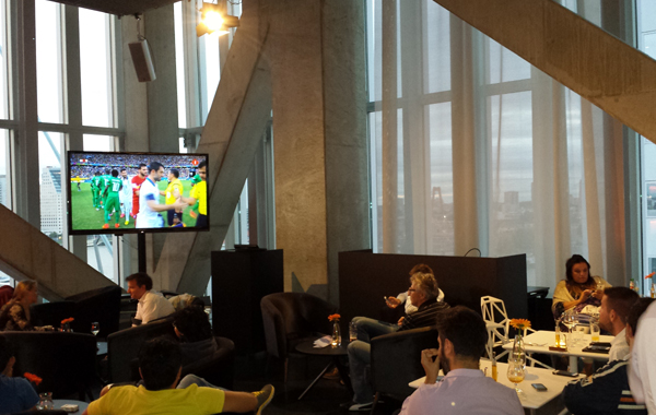 Στο γκολ του Σαμαρά, έγινε κυριολεκτικά χαμός, με τους πελάτες του μαγαζιού να συμμετέχουν στους πανηγυρισμούς. Εντυπωσιακή ήταν και η ιδέα των ανθρώπων της Toyota να τοποθετήσουν μια φωτογραφία με την εθνική μας ομάδα, έξω από την αίθουσα όπου έγινε η συνέντευξη Τύπου, καλωσορίζοντάς μας.