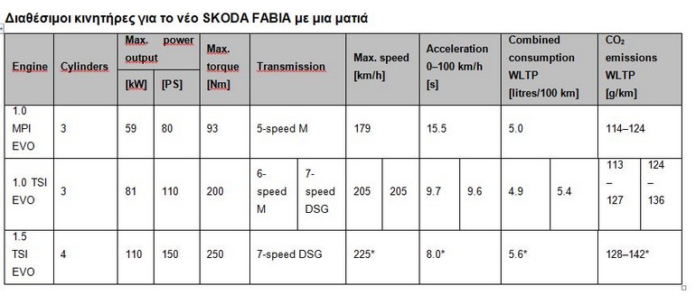 Οι τρικύλινδροι κινητήρες MPI του FABIA με κυβισμό ενός λίτρου προέρχονται από τη γενιά EVO και είναι 4 kW ισχυρότεροι από τις προηγούμενες μονάδες ενώ επιτυγχάνουν μειωμένη κατανάλωση καυσίμου και χαμηλότερες εκπομπές ρύπων.