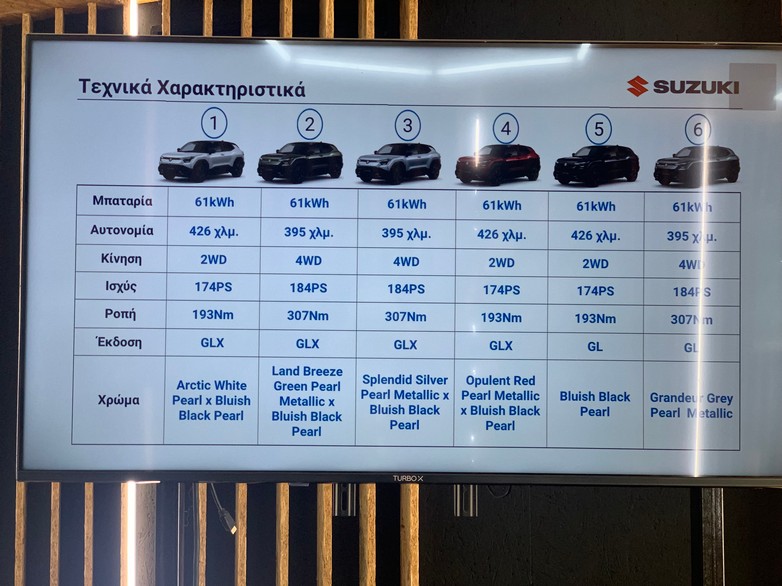 Το νέο e VITARA θα διατίθεται σε εκδόσεις GL και GLX, με επιλογές μπαταρίας 49 kWh και 61 kWh, καθώς και με σύστημα κίνησης 2WD ή 4WD.