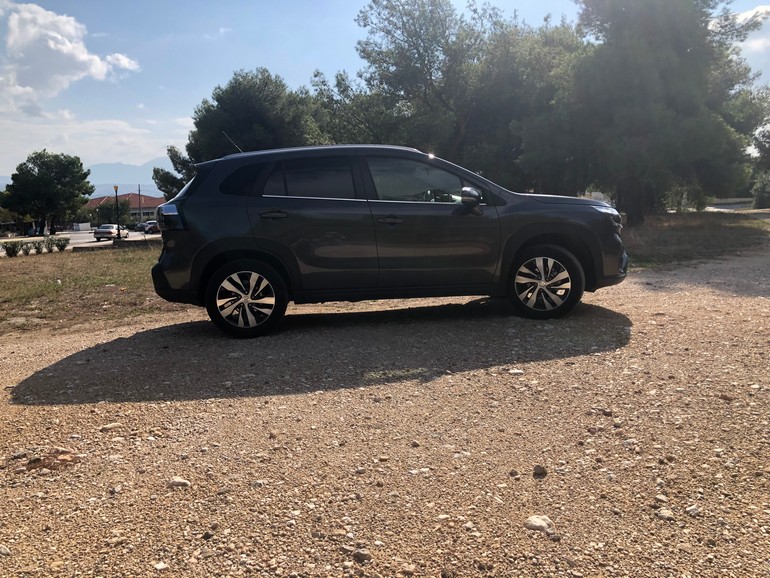 Το σημερινό αυτοκίνητο της παρουσίασης μας είναι το τρίτης γενιάς Suzuki SX4 S-Cross με κινητήρα 1.4 Hybrid 48V 2WD. Οι σχεδιαστές της τελευταίας έκδοσης SX4 S-Cross δεν μπορώ να πω ότι έφεραν τη σχεδιαστική επανάσταση. Αρκέστηκαν στα τυπικά. Άλλαξαν ελαφρώς την εξωτερική του εμφάνιση και έκαναν πιο επιθετική την μπροστινή μάσκα, χωρίς να ανεβάζουν το τελικό κοστολόγιο. Τα μπροστινά φωτιστικά είναι τώρα με τρείς σειρές Led λαμπτήρες ενώ με Led τεχνολογία είναι και τα πίσω φωτιστικά.