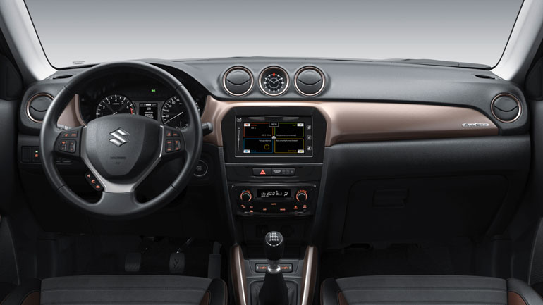 Η μινιμαλιστική εικόνα του VITARA εστιάζει στην χρηστικότητα, χωρίς φυσικά οι επιβάτες να στερούνται τεχνολογίες και οθόνες αφής. Όλοι οι επιβάτες απολαμβάνουν ανέσεις και χώρους που εξασφαλίζουν ξεκούραστα ταξίδια, ενώ ο οδηγός έχει μία άριστη πανοραμική θέα του δρόμου. Μία οθόνη αφής στο κέντρο του ταμπλό παρέχει τον πλήρη έλεγχο του συστήματος infotainment ενώ φυσικά υποστηρίζει την σύνδεση των smartphone. Το πορτπαγκάζ μπορεί από τα 289λτ. να φτάσει τα 1.119λτ. έχοντας μάλιστα σχήμα που επιτρέπει την εύκολη φόρτωση.