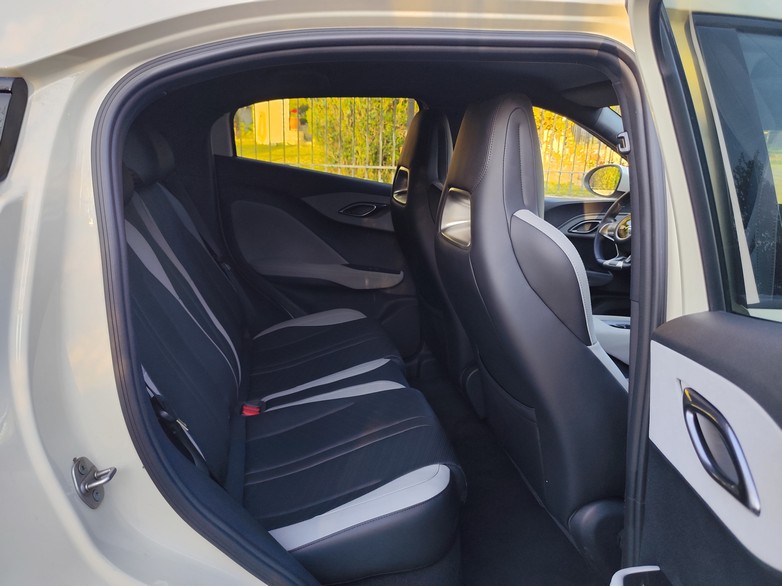 Παρά τα 3.990χλστ. μήκος του μοντέλου, τέσσερις ενήλικες θα καθίσουν με άνεση (ένα ακόμα πλεονέκτημα των ηλεκτρικών – η ύπαρξη επίπεδου δαπέδου), με αρκετούς χώρους για μικροαντικείμενα και ένα εξαιρετικό για την κατηγορία πορτπαγκάζ που αγγίζει τα 308λτ. και φτάνει τα 1.037λτ. με τα πίσω καθίσματα αναδιπλωμένα.