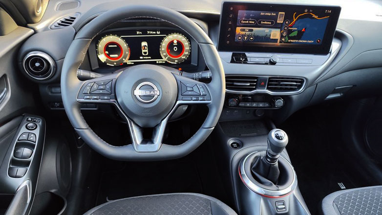 Μπαίνοντας στο εσωτερικό, πολύ γρήγορα συνειδητοποιείς πως το νέο Juke έχει όλες τις τεχνολογίες και όλες τις hi-tech ευκολίες που διαθέτουν τα μοντέρνα Ι.Χ. χωρίς όμως να «πνίγει» τον οδηγό με δεκάδες οθόνες και πλήκτρα αφής. Αντιθέτως όλα είναι εύχρηστα, όλα είναι φτιαγμένα και τοποθετημένα με τέτοιο τρόπο που κάνουν τη ζωή του οδηγού πιο εύκολη.